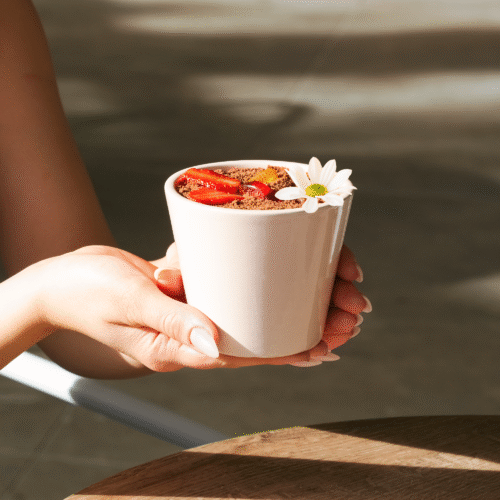 Eritilmiş sütlü ve beyaz Belçika Çikolatası, çilek, muz, brownie parçaları, bir solucan ve biraz da toprak.
