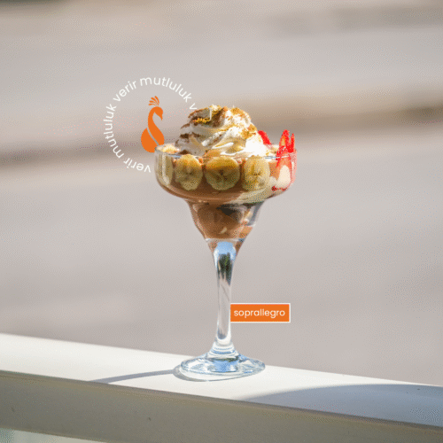 Arada kalanlar için; yarısı Soprano, yarısı Allegro. Eritilmiş Belçika Çikolatası, muz, çilek, brownie parçaları.